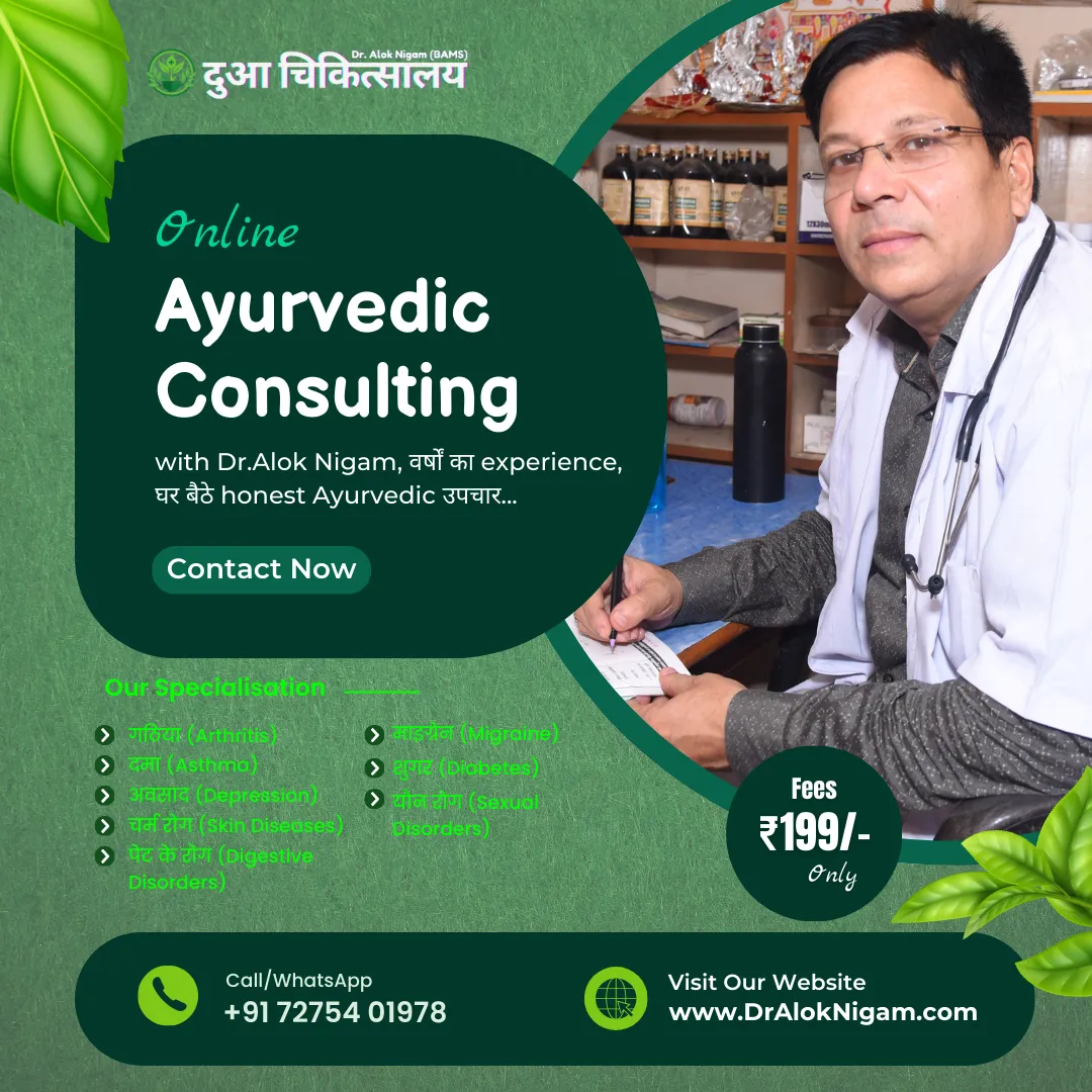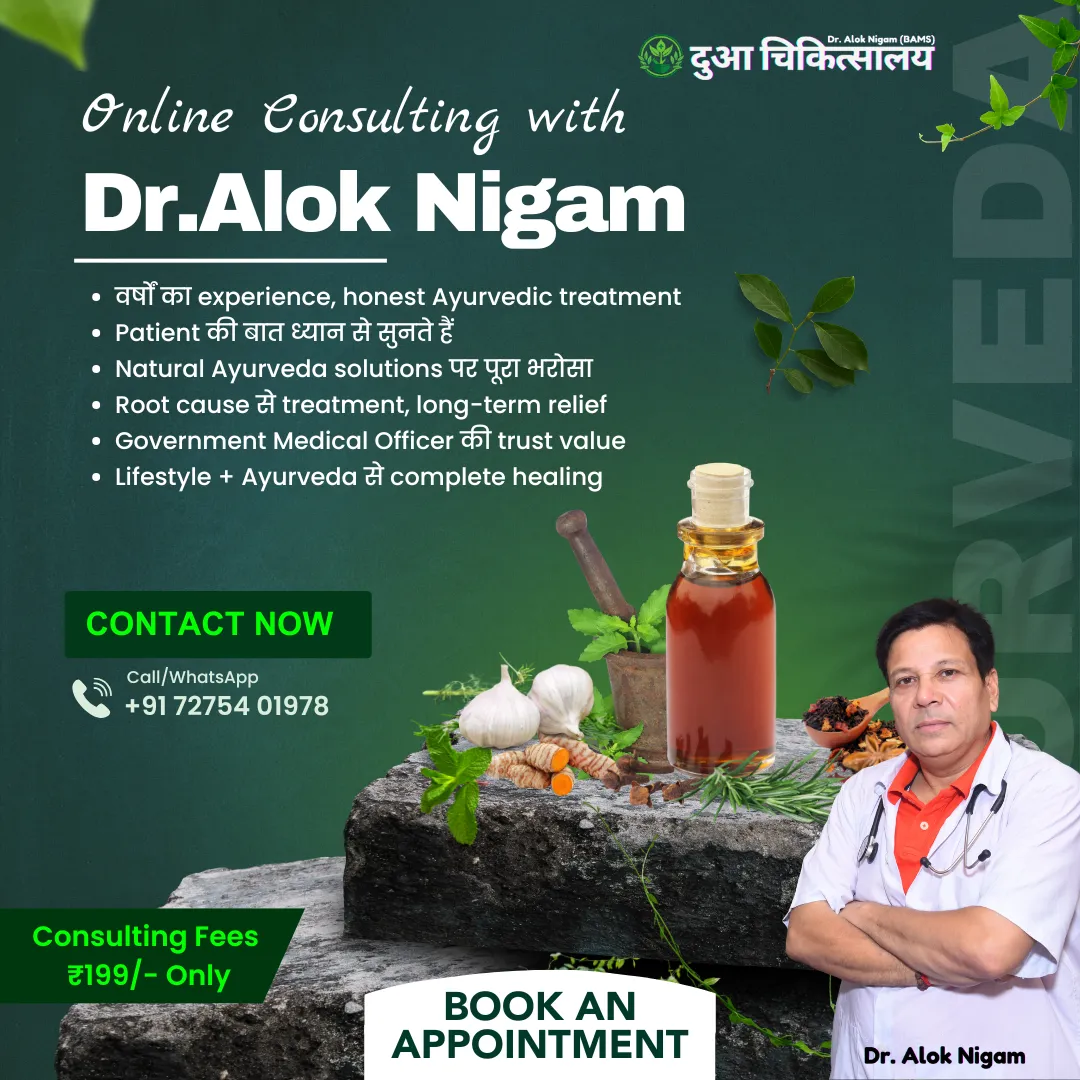 Dr. Alok Nigam एक अनुभवी और समर्पित Ayurvedic Doctor हैं, जो वर्षों से आयुर्वेद के माध्यम से लोगों को प्राकृतिक, सुरक्षित और प्रभावी उपचार प्रदान कर रहे हैं।